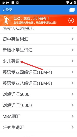 在词汇分类页面选择【少儿英语】类别,进入其学习或测试界面后,就能挑选对应的单元来进行词汇测试练习。