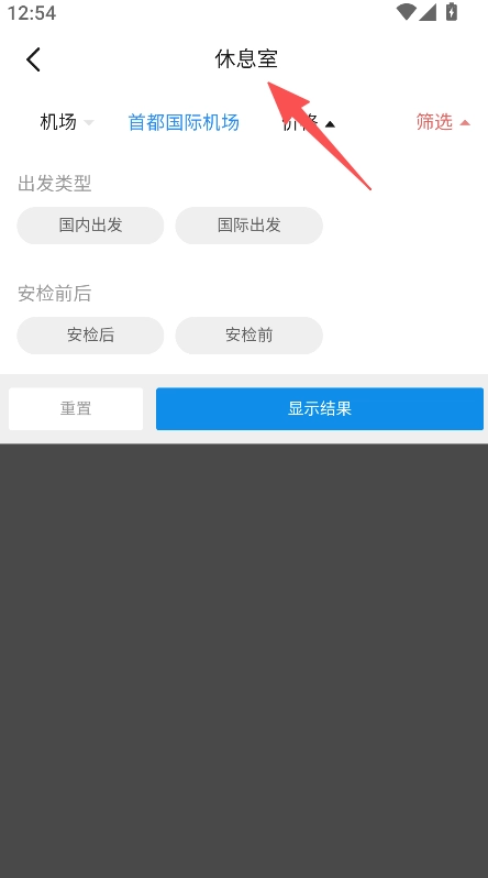 切换到机场相关页面,选择出发类型的安检时段,然后点击“显示结果”查看具体信息。