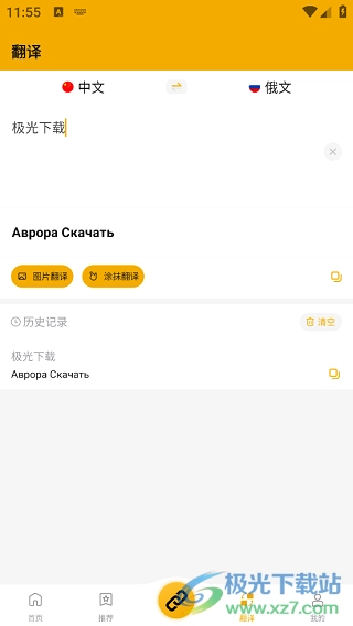 你可以点击下方菜单栏里的“翻译”选项,在这里能进行中俄互译,除了文本翻译,还支持图片翻译和涂抹翻译功能。