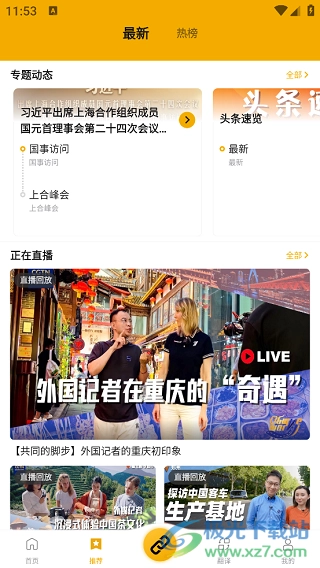 进入“推荐”界面后,还能看到专题动态、直播回放等板块。