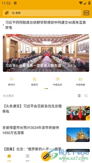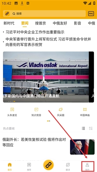 打开中俄头条应用,在其首页可以浏览到中国与俄罗斯的热点新闻资讯。