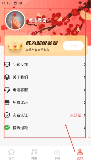 在我的页面,【登录后可开通会员】,还能开展问题反馈、实名认证等相关操作。