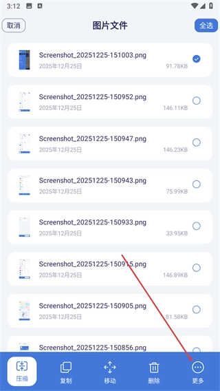 勾选目标文件,点击底部的更多。