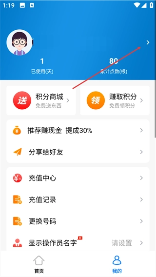 在“我的”页面,点击页面上方头像区域的箭头按钮。