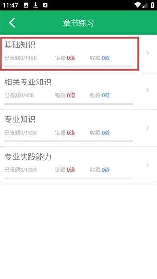 进入【章节练习】页面后,选择【基础知识】模块,点击就能进入它的细分章节页面。