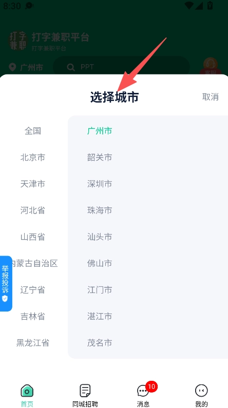 我们提供城市选择功能,用户进入首页后可挑选目标城市,系统会自动切换到该地区对应的兼职信息页面。