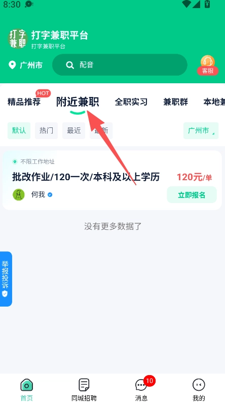 平台支持岗位查看功能,用户可在附近兼职板块筛选出目标岗位,点击进入详情页即可查看工作内容、任职要求等相关信息。