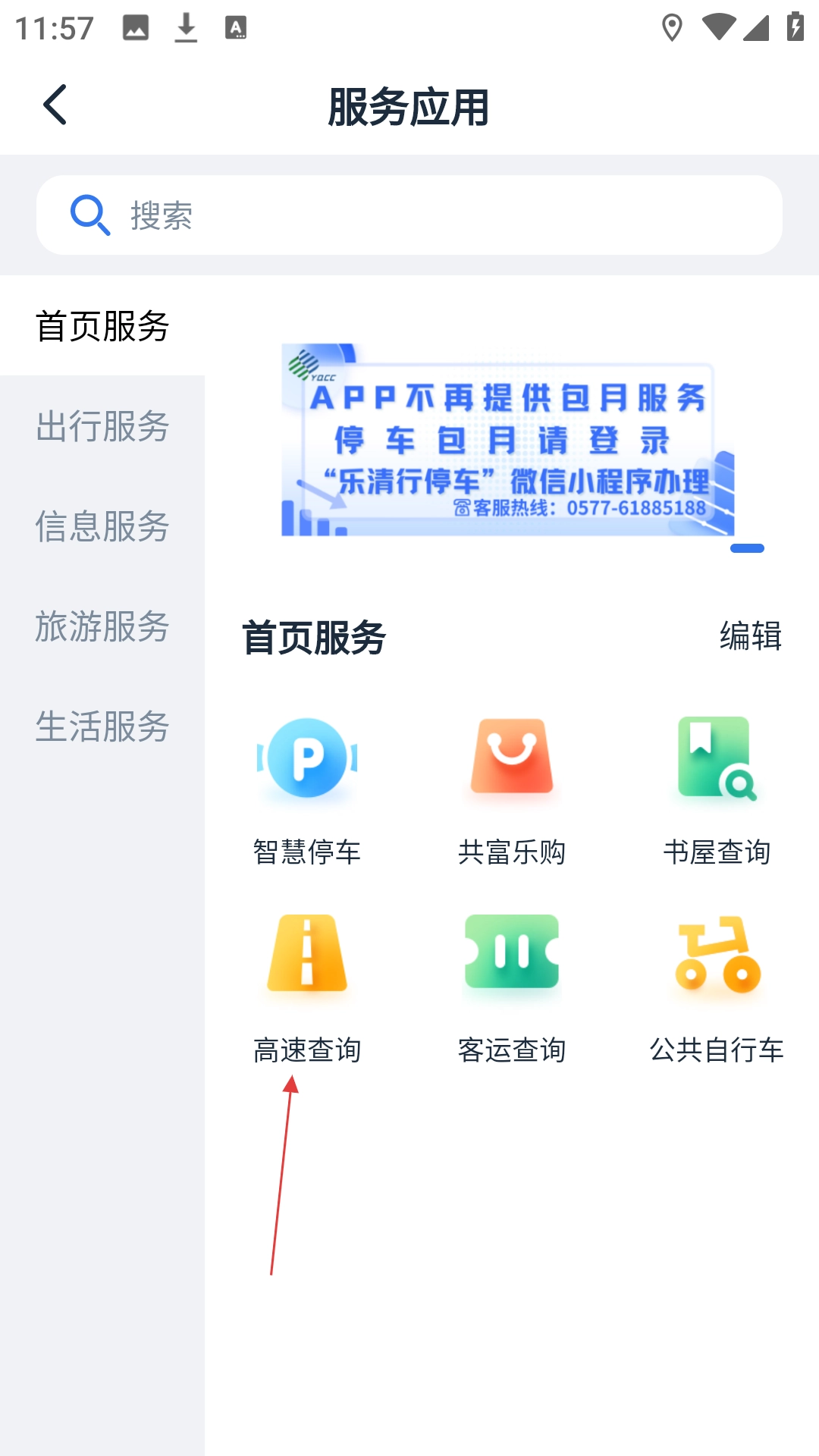 在服务应用页面,点击【高速查询】选项,即可进入高速查询页面。
