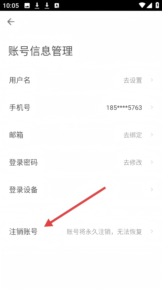 在【账号信息管理】页面中,选择并点击【注销账号】这一选项,即可启动账号注销流程。