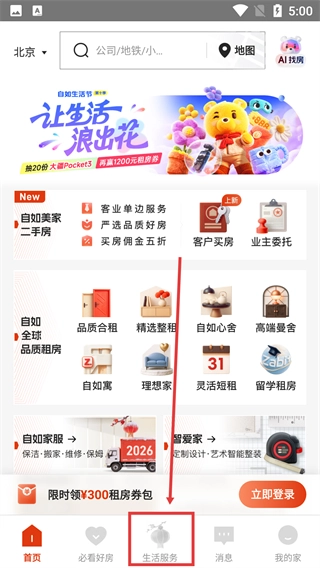 进入软件后,先找到底部【生活服务】入口。