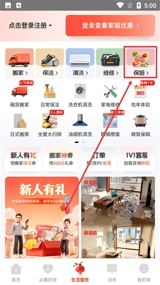 在【生活服务】页面,找到【保姆】选项。