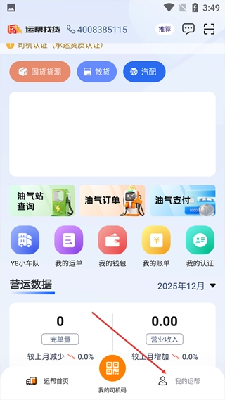 在运帮找货首页,点击底部【我的运帮】选项。
