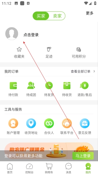 打开农卷风,点击【我的】。