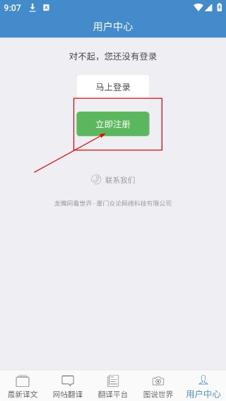 进入【用户中心】页面后,要是页面显示未登录状态,点击【立即注册】按钮,就能开启该账号的注册流程了。