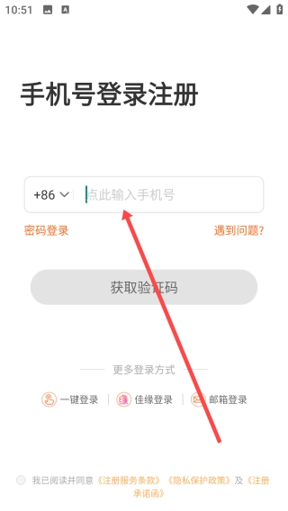 打开百合网,点击【输入手机号】
