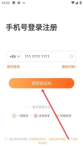 输入手机号以后,点击【获取验证码】