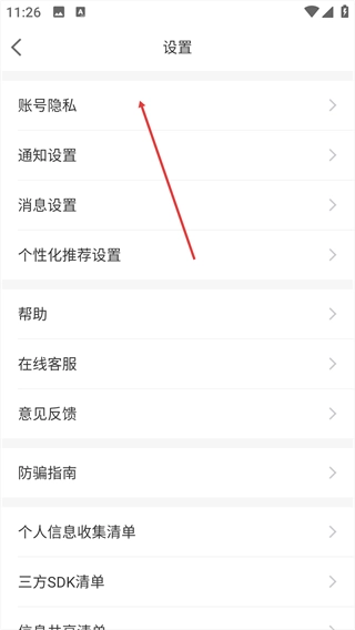 点击【账号隐私】选项,进入对应页面。