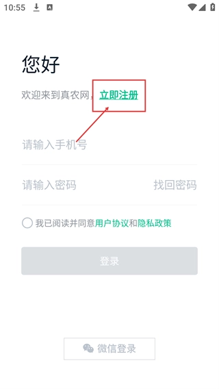 在真农网的登录页面,点击【立即注册】选项,即可开启账号注册流程。