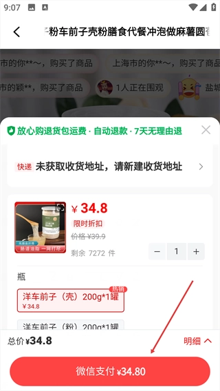 确认商品规格后,可选择【微信支付】,完成购买。