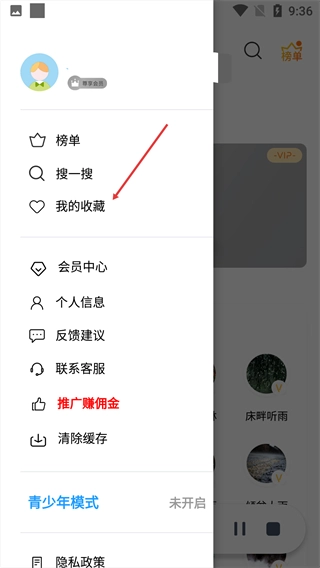 在展开的侧边栏中,找到【我的收藏】选项并点击。