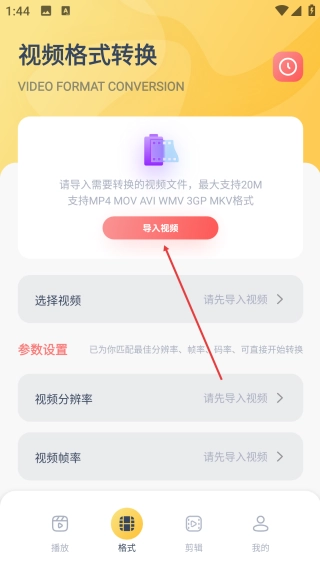 打开视频播放器后,点击底部的【格式】选项,即可进入视频格式转换页面。