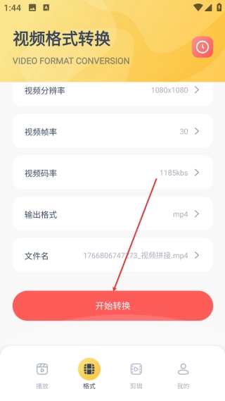 在视频格式转换页面,确认各项参数无误后,点击【开始转换】按钮,就能启动格式转换流程了。