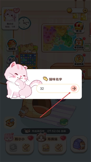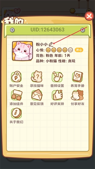 点击【粉小小】对应的名称区域,会弹出可用于修改的“猫咪名字”输入框。