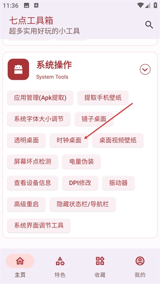 进入首页后,在“系统操作”模块里找到【时钟桌面】选项并点击。