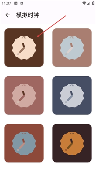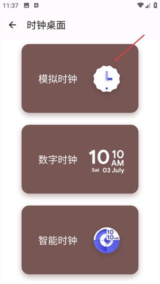 在【时钟桌面】页面,选择【模拟时钟】选项。