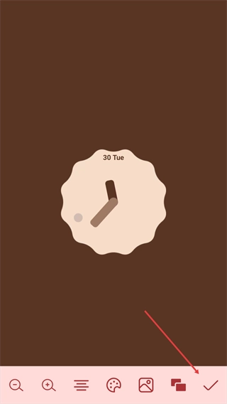 点击底部那个带对勾图标的确认按钮,就能完成模拟时钟桌面的设置了。