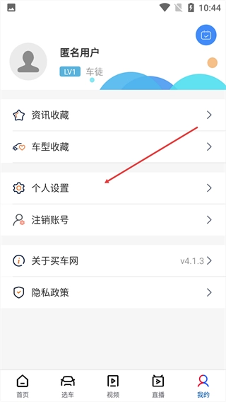 切换至个人页面,点击【个人设置】。