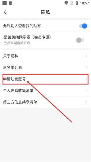 在【隐私设置】页面里,找到【申请注销账号】这一选项,点击它就能进入账号注销的身份验证流程。