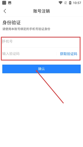 在【账号注销】页面,按顺序填写【手机号】和【验证码】,之后点击【确认】按钮,即可完成账号注销流程。