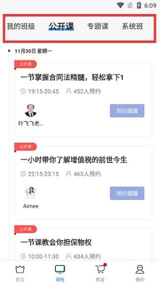 在【课程】界面顶部,点击【我的班级】【公开课】等标签,就能查看对应的课程安排,像公开课的时间、主讲人以及预约提醒等信息都能看到,便于大家安排学习计划。