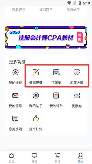 在【我的】页面的【更多功能】里,借助【做题记录】【错题集】【习题收藏】这些功能,能够回顾学习状况,梳理错题并收藏重点习题,从而提高学习效率。