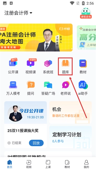 在界面里找到【题库】按钮并点击,就能进入对应的练习板块。
