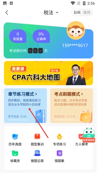 进入【章节练习模式】页面后,你可以挑选对应的章节(例如【第一章-税法总论】),点击展开按钮就能开始该章节的习题练习了。