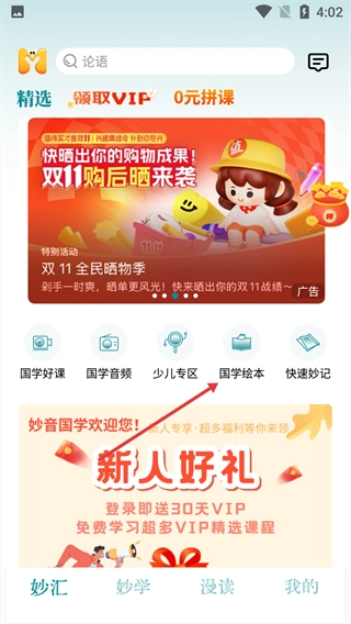 在妙汇页面,点击【国学绘本】选项。
