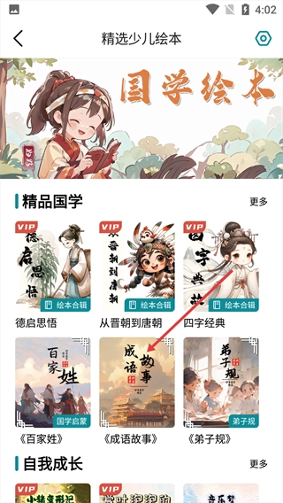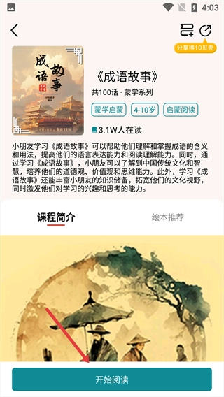 选择《成语故事》绘本,进入该绘本的详情界面。