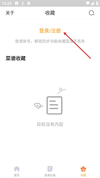 进入收藏页面后,能看到【登录/注册】选项,系统提示登录即可解锁同步功能。