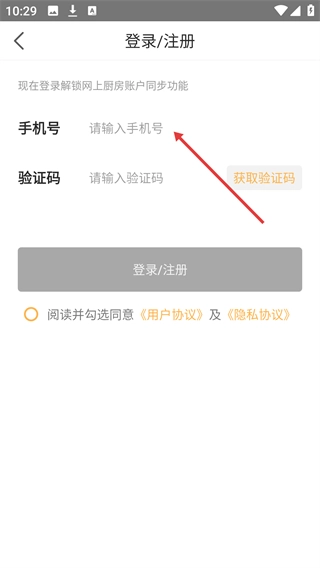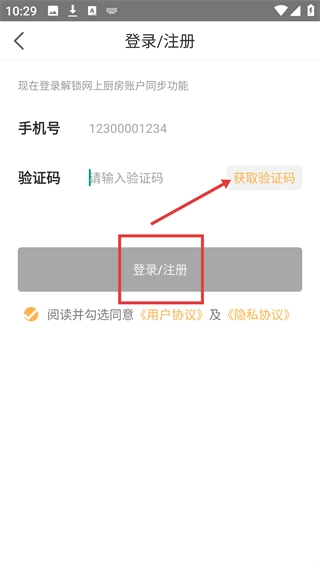在【登录/注册】页面输入手机号,接着点击【获取验证码】,勾选相关协议,输入收到的验证码后,就能点击【登录/注册】按钮完成整个流程啦。
