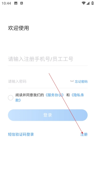 在登录页面的右下角找到【注册】选项,点击它就能进入注册申请的填写界面了。