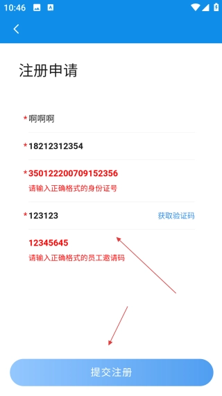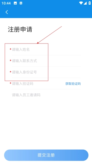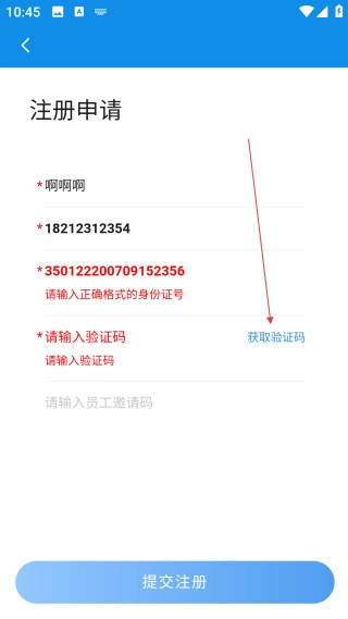 填写完验证码后,点击页面底部的【提交注册】按钮,就能提交注册申请了。