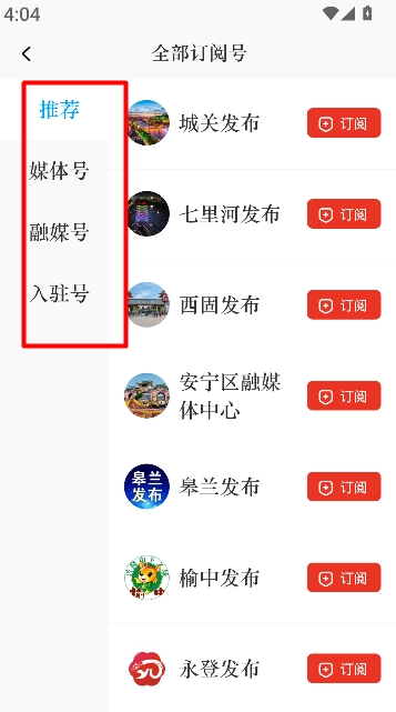 你可以在列表里找到媒体号、融媒号、入驻号这些分类,挑选你感兴趣的订阅入口点进去,就能完成关注啦。
