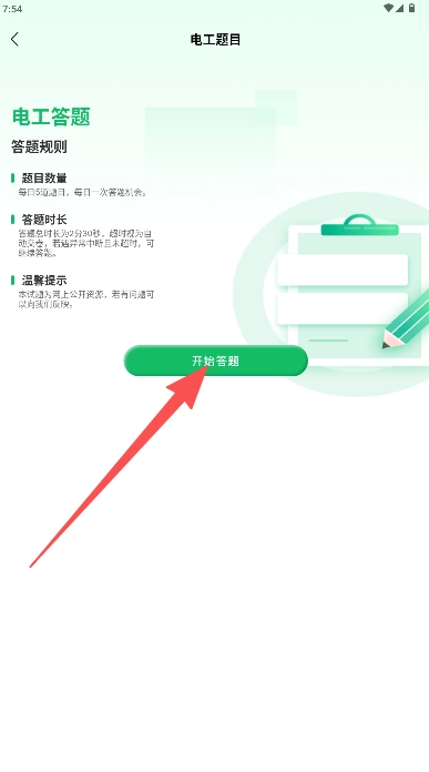 在阅读答题规则并了解题目数量与时长后,点击“开始答题”按钮。