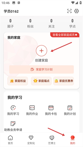 在个人页面,点击“创建家庭”对应的加号按钮。