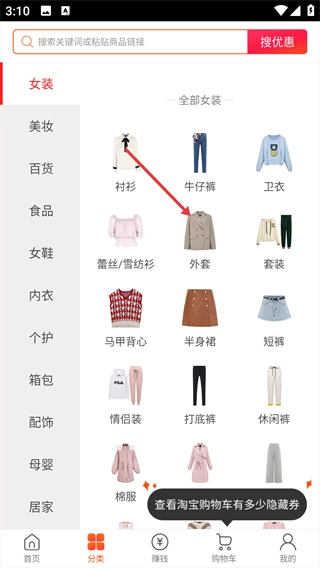 在首页界面,点击底部的分类按钮,即可进入商品分类页面。