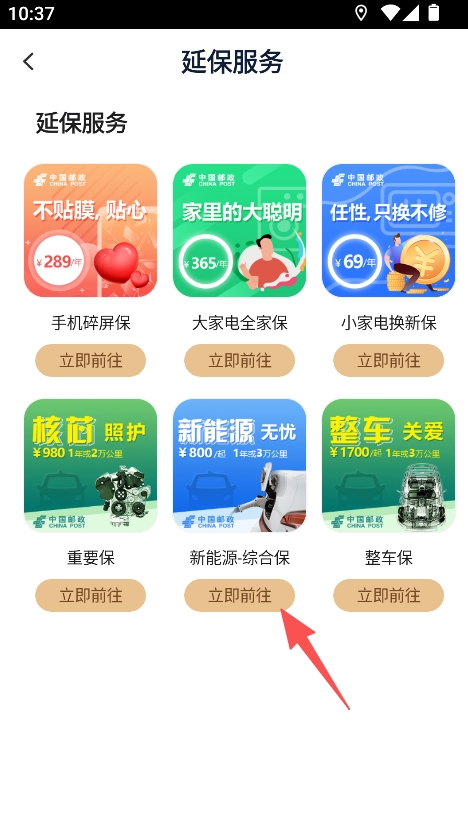 我们提供延保服务办理支持,涵盖手机碎屏保、大家电全家保、新能源综合保等多种保障类型,您可通过选择具体车型来查看对应的产品详情。