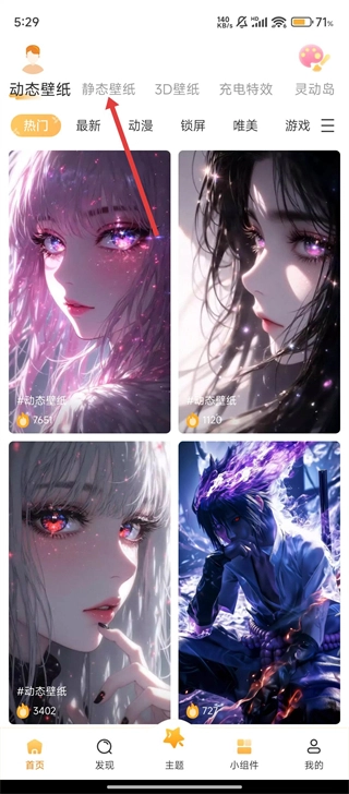 打开图图乐软件后,切换到【静态壁纸】分类,就能直接浏览心仪的壁纸啦。