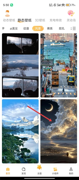 看到【风景】这类更细分的标签时,点击对应的标签就能筛选出同风格的静态壁纸,让查找更加精准便捷。